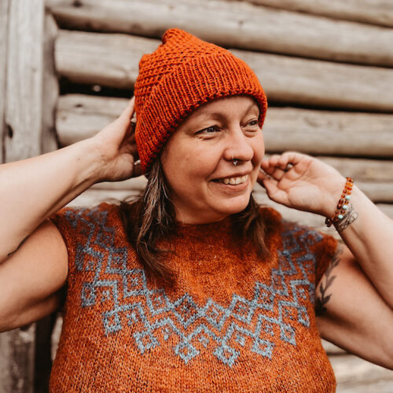 Olen taiteen maisteri ja muotoilija Itä-Suomesta. Asun metsän keskellä luonnon ja sen eläinten ympäröimänä. Minulle muotoilijana perinteet ja historia ovat tärkeitä ja haluankin jatkaa perinnetarinoiden kertomista neuleiden muodossa. Neuleeni syntyvät kotimaisesta luonne ja muotomaisemasta ja haluan herättää henkiin ja ylläpitää perinteita neuleiden muodossa.